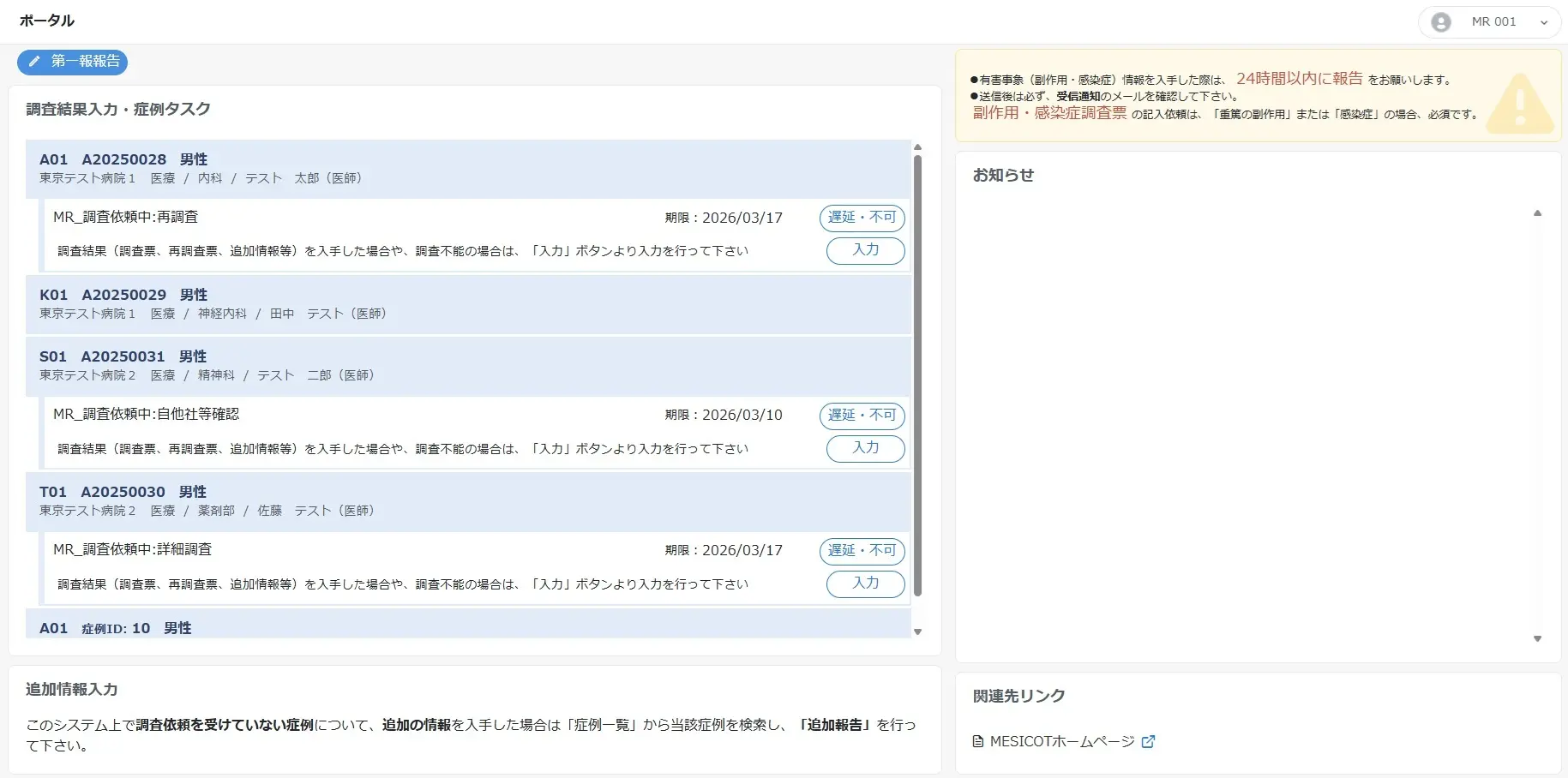 これまで古い症例の追加情報があったときは、地下の倉庫まで探しに行っていた。しかしMESICOTを導入してからは、古い症例も履歴管理できるので、随分と楽になった。